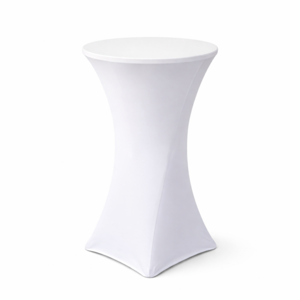 Enhance your event setup with our White Lycra Cocktail Table Cover, designed to give a sleek, modern, and wrinkle-free finish to standard cocktail tables. Made from high-quality stretch fabric, this fitted cover hugs the table perfectly, creating a clean and elegant silhouette.